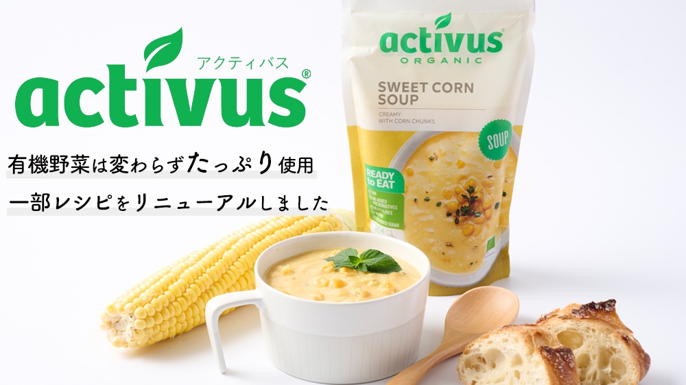 レシピが新しくなり、有機野菜スープのブランド名がaugaからactivusに変わりました。
