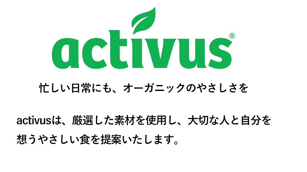 activusは、厳選した素材を使用し、大切な人と自分を想うやさしい食を提案いたします。をモットーに忙しい現代人にオススメのオーガニック食品をご提案いたします。